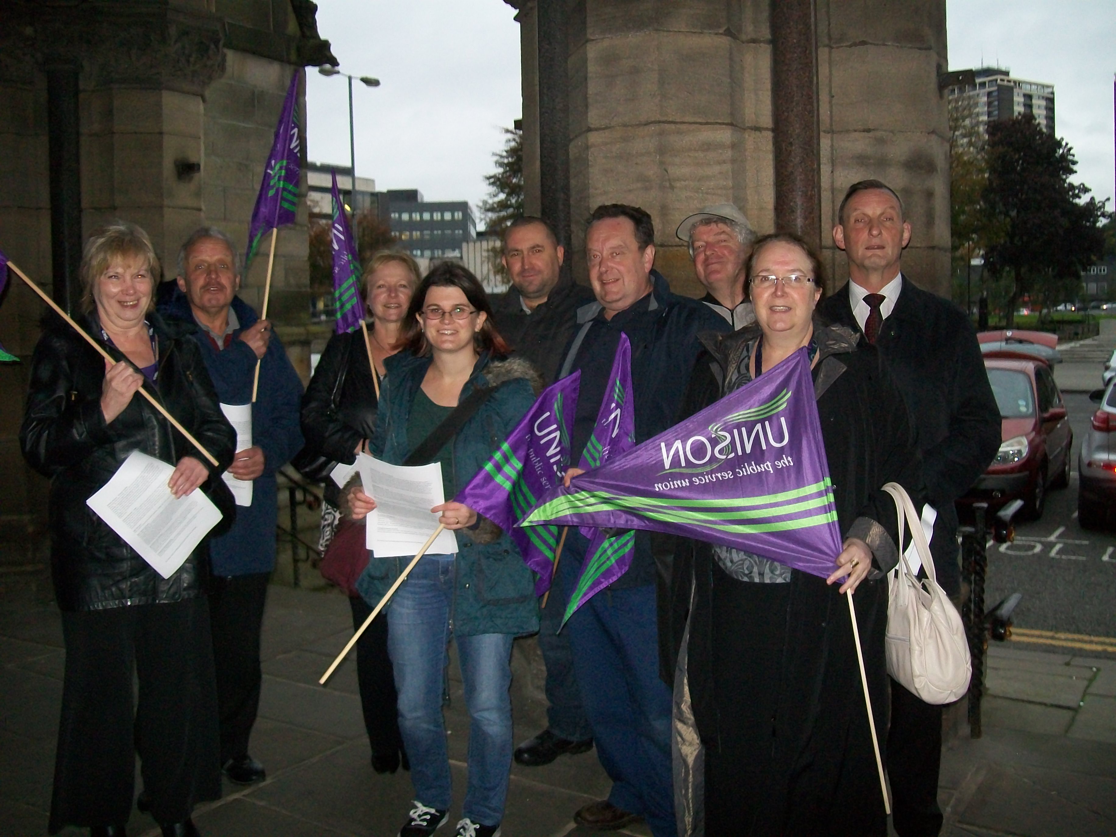 On 27th November Rochdale UNISON, UNITE and GMB will be holding a lobby of Councillors at their cabinet meeting. Everybody should go to this. Bring your workmates. Make sure everybody who is angry about the cuts is there. Why not ask your whole team to come? Bring people who are not in the union yet and ask them to join. Family members can come along too. Let the council know how many people they are hurting.